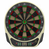 Дартс DFC DARB06E - усовершенствованная электронная мишень для дартса, предназначенная для домашнего использования. Изделие оснащено 4-мя светодиодными дисплеями с красной подсветкой, на которых отображается вся необходимая информация для игроков. В системе предусмотрено 27 видов игр и 243 опции, что позволяет играть вместе от 1 до 16 игроков. А звуковое сопровождение игры добавит интереса и азарта. Для работы мишени требуется 4 батарейки типа АА (1,5В, в комплект не входят) или адаптер питания (постоянного тока). Адаптер является опциональным, в комплект поставки не входит. В комплекте поставки есть крепление, чтобы повесить мишень на стену. Материал изготовления - ABS пластик. В комплект изделия входят 6 дротиков и 24 наконечника, также выполненных из ABS пластика. Вес дротика составляет 13 грамм, а диаметр мишени - 35 см.