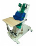 Опора для стояния – пронационная рама с регулируемым углом наклона от 45° до вертикального положения, поэтапно переводит пациента из наклонного положения лежа на животе в положение стоя. Имеет крепления для стоп, колен, тазобедренного и грудного отделов, мягкие съемные подлокотники. Крепления стоп регулируются по ширине, крепления колен по ширине и высоте, тазобедренного и грудного отделов – по высоте. Столик имеет взаимозаменяемую столешницу и ванночку для воды. Опора установлена на колесах, задняя пара колес имеет тормоза. Мягкие элементы на поролоне, обтянуты искусственной кожей. Изделие окрашено мебельным лаком.