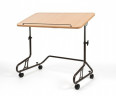 Прикроватный столик модель 376 бельгийской компании Vermeiren может использоваться в домашних условиях для удобства ухода за лежачими или малоподвижными больными. Регулируемая высота и настраиваемая по длине и углу наклона столешница  с фиксированной полкой  позволяет пользователю читать, писать, заниматься своими любимыми делами , а заодно и поесть не вставая с кровати. Наличие колес  позволяет передвигать столик по помещению в любое место. Материал столешницы- натуральное дерево.